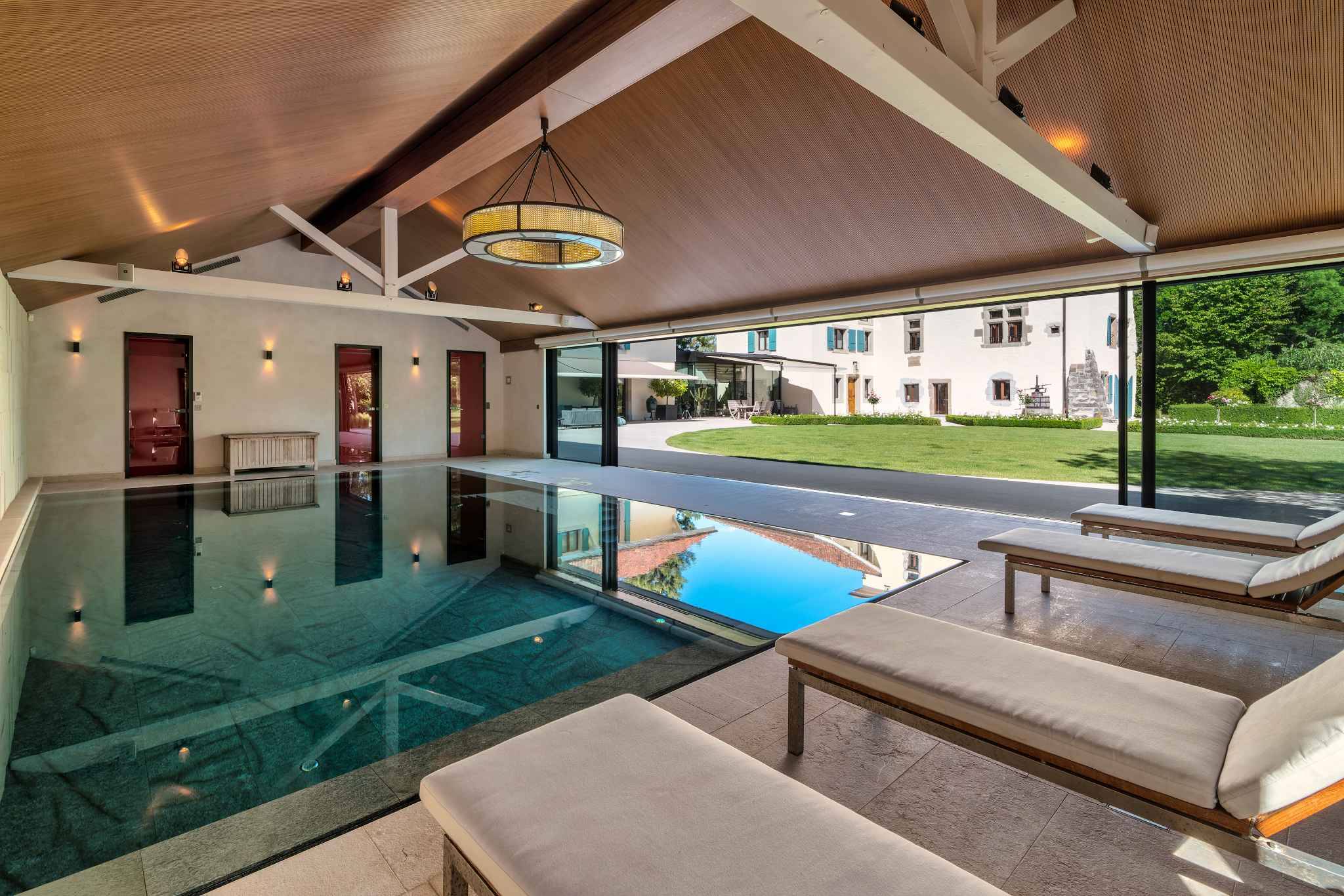 Vous serez transportés par l’ancienne écurie reconvertie en piscine intérieure ainsi que par le magnifique jardin d’une surface d'environ 4'400 m2, permettant de préserver le calme et l’intimité de la propriété.