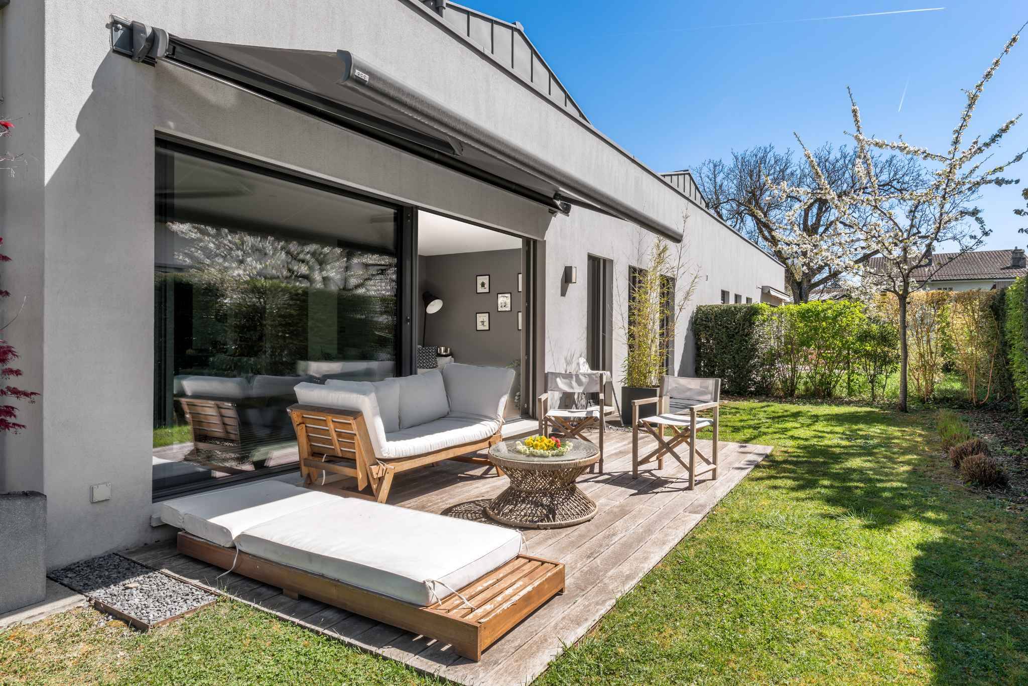 Située dans un cadre résidentiel et verdoyant de la commune de Thônex, cette belle maison contemporaine bénéficie d'un emplacement idéal, à proximité immédiate des transports publiques, de la gare du CEVA (Chêne-Bourg) et des écoles primaires et secondaires.