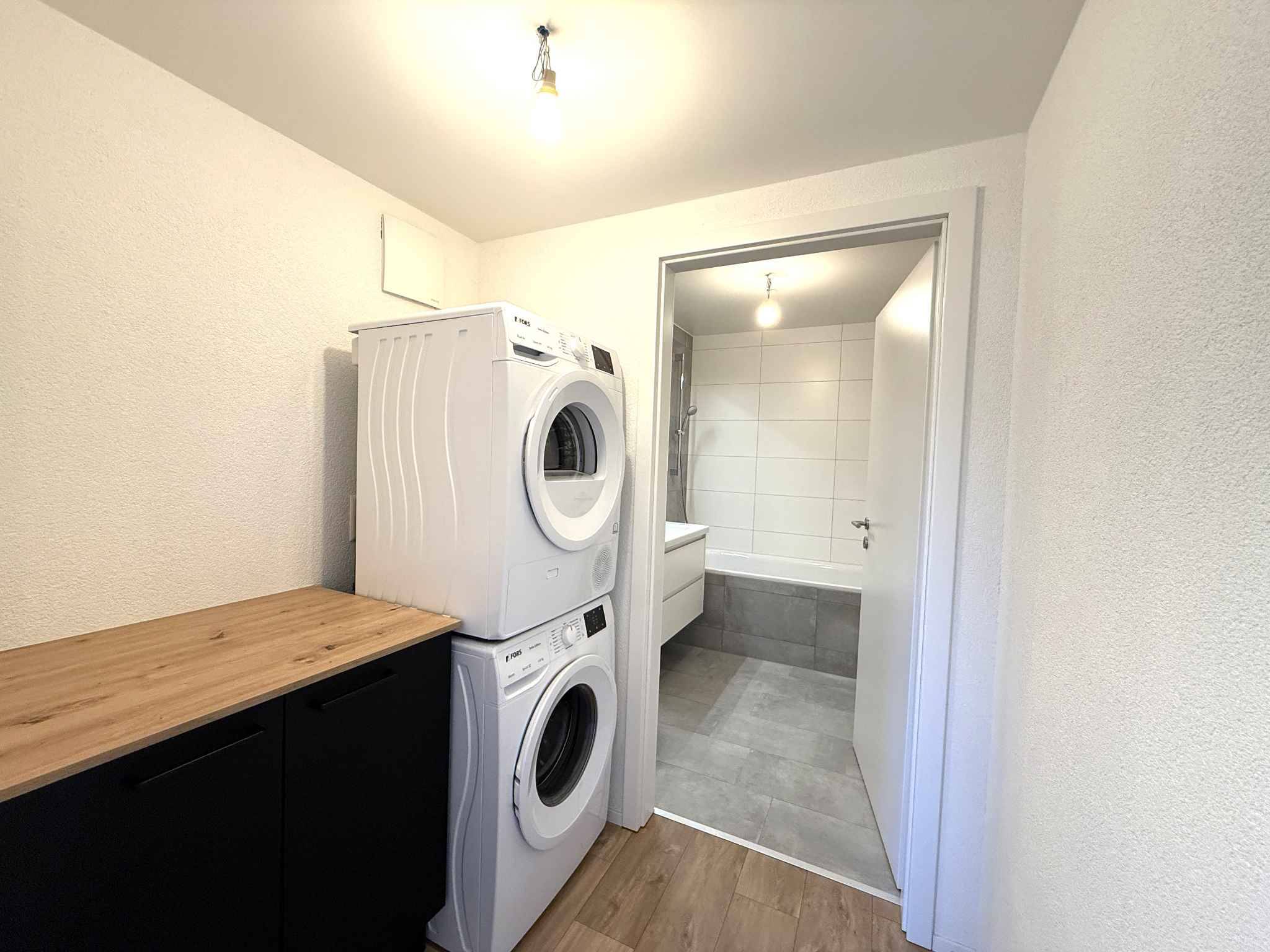 Rénové avec goût et avec des matériaux contemporain, parquet au sol, 3 chambres à coucher, 1 salle de douche, 1 salle de bains, colonne de lavage/séchage, cuisine ouverte entièrement équipée avec de l’électroménager Siemens, donnant sur un grand séjour/salle à manger, prolongé par un balcon, vue dégagée sans vis-à-vis.