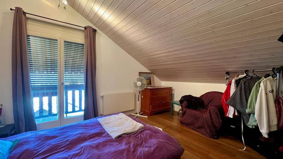 It is currently rented for the sum of: CHF 2,130.- including the garage box and charges.