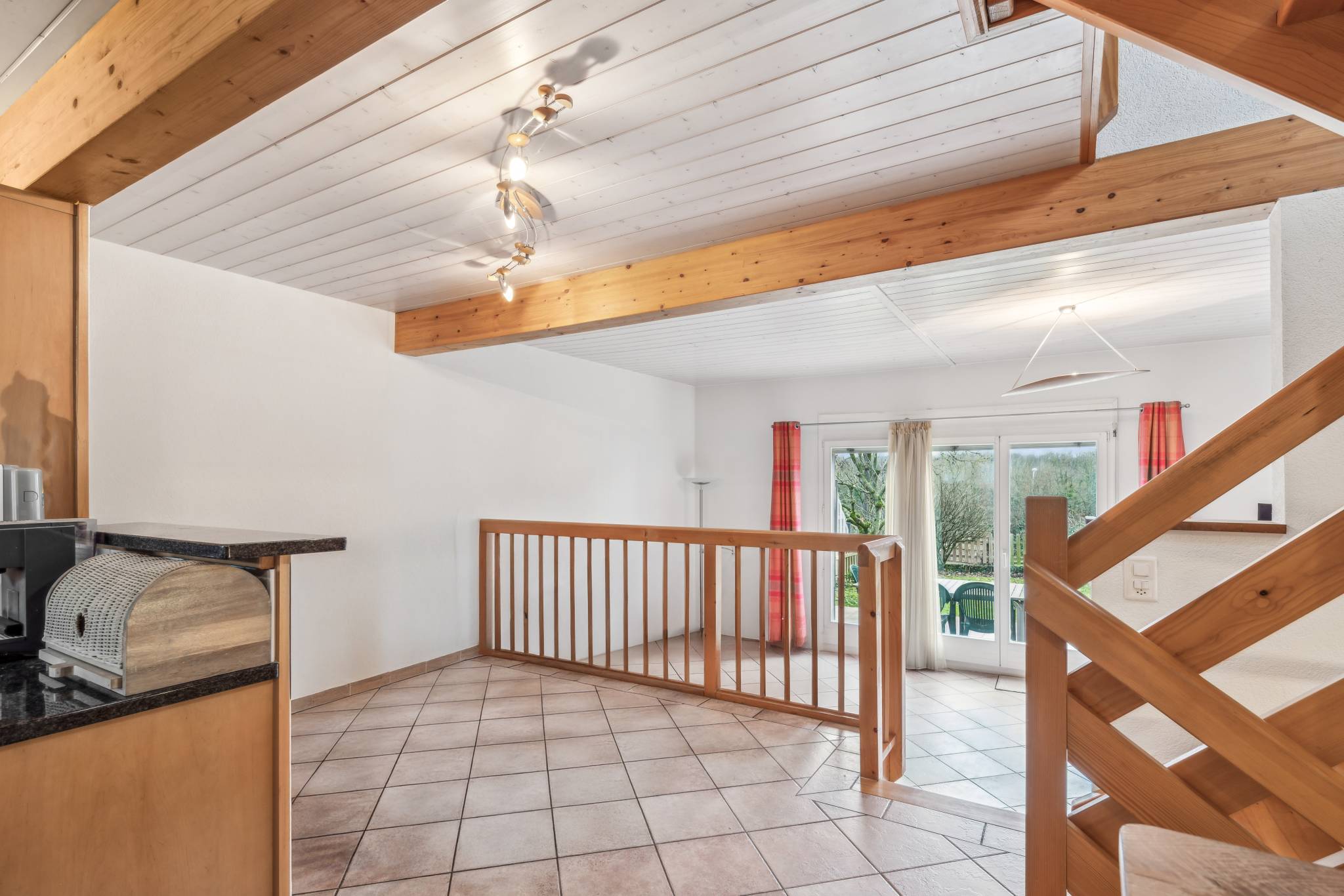 Le rez-de-chaussée s’ouvre sur un hall d’entrée avec toilettes visiteurs, une cuisine ouverte, un espace repas et un séjour lumineux offrant un accès direct à la terrasse et au jardin, idéalement exposé sud-ouest.