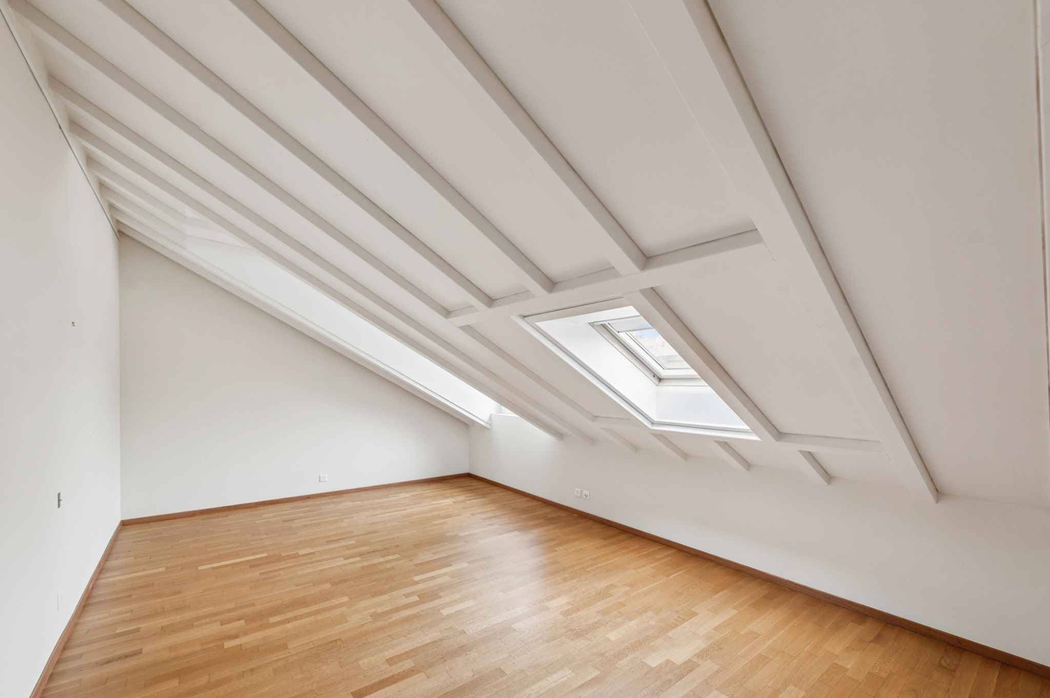 L'appartement est situé au 2e étage et dernier étage d'un immeuble récent, toutes les pièces sont mansardées.