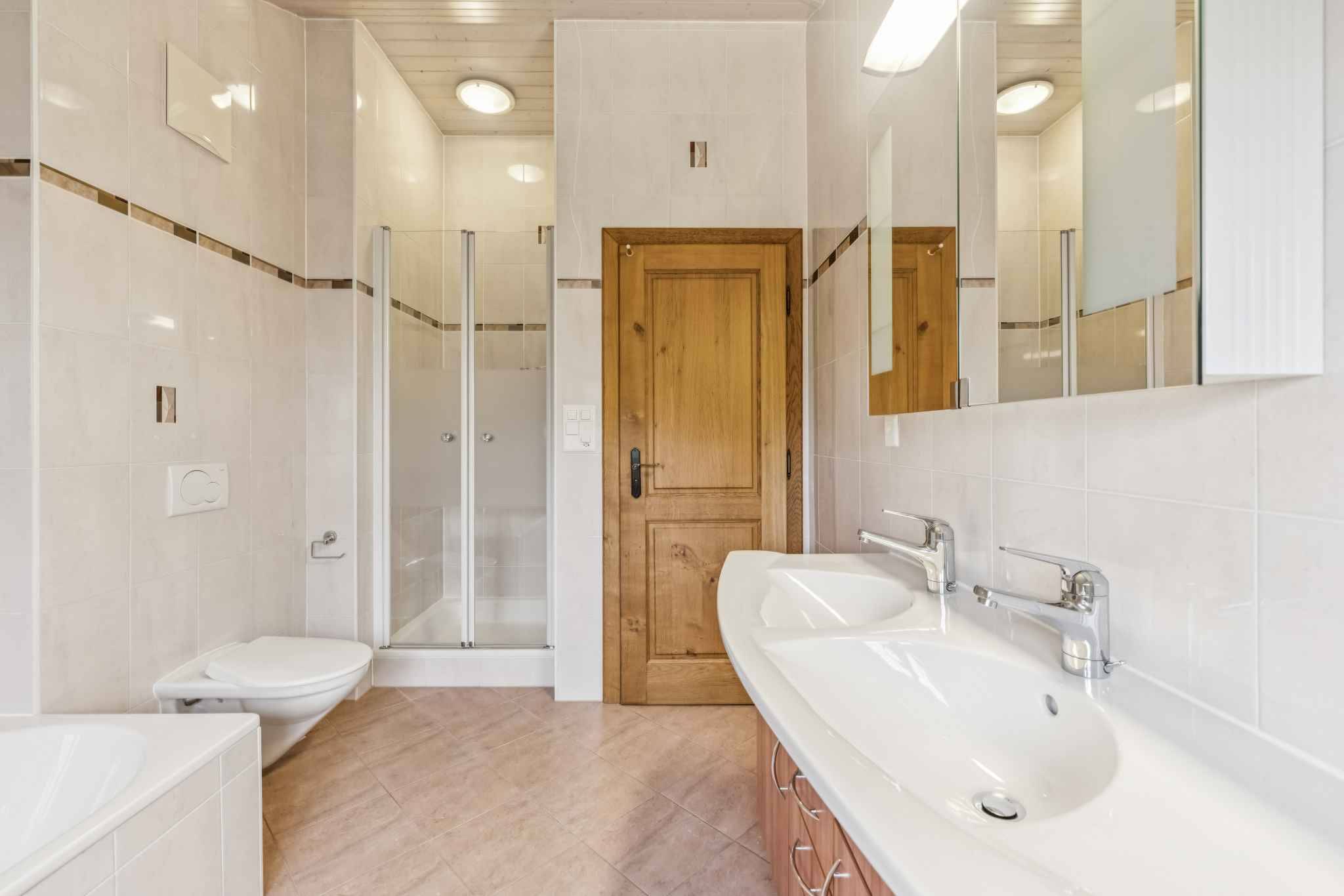 1er niveau / espace nuit: dégagement avec armoires, deux agréables chambres, une salle de bains/douche avec toilettes