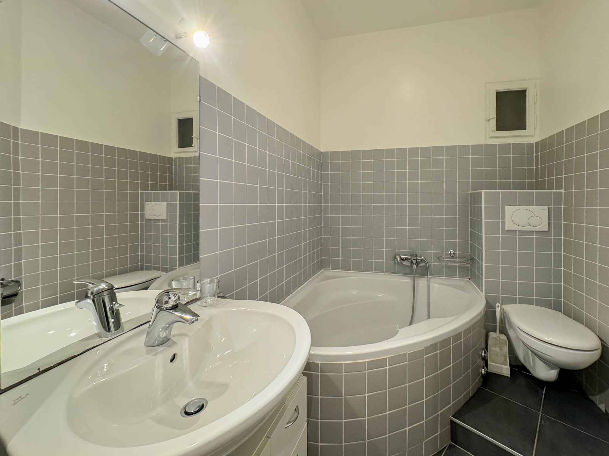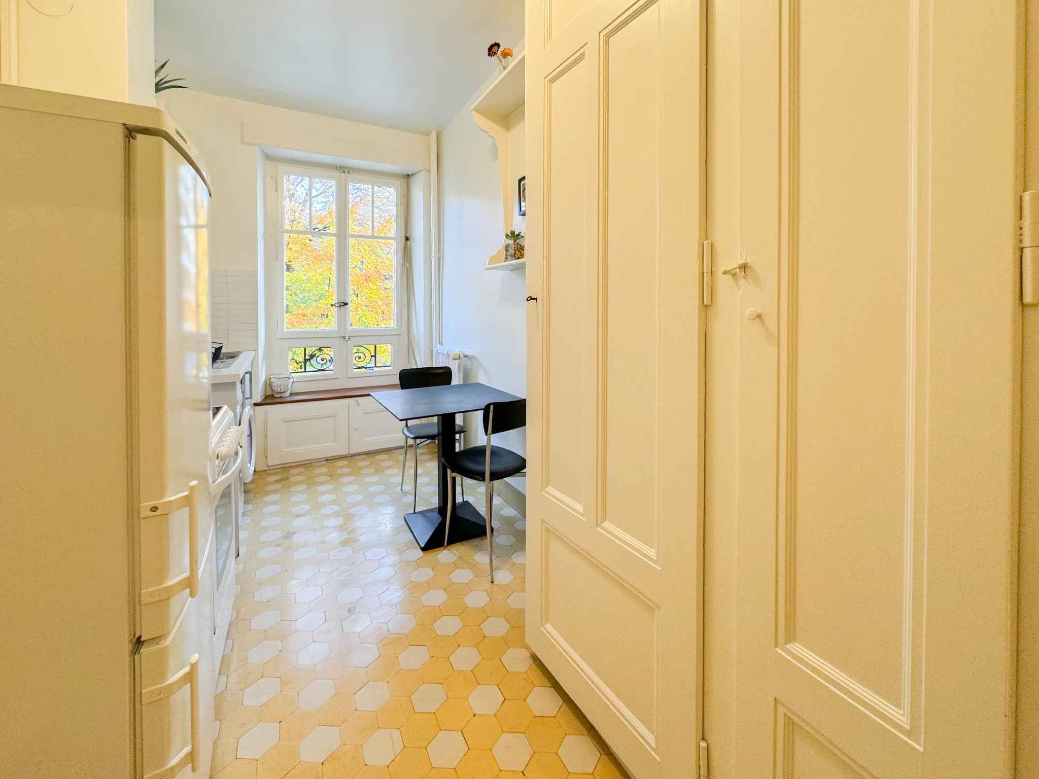 Ce charmant deux pièces se situe proche de toutes les commodités dans un immeuble ancien du quartier des Eaux-Vives.